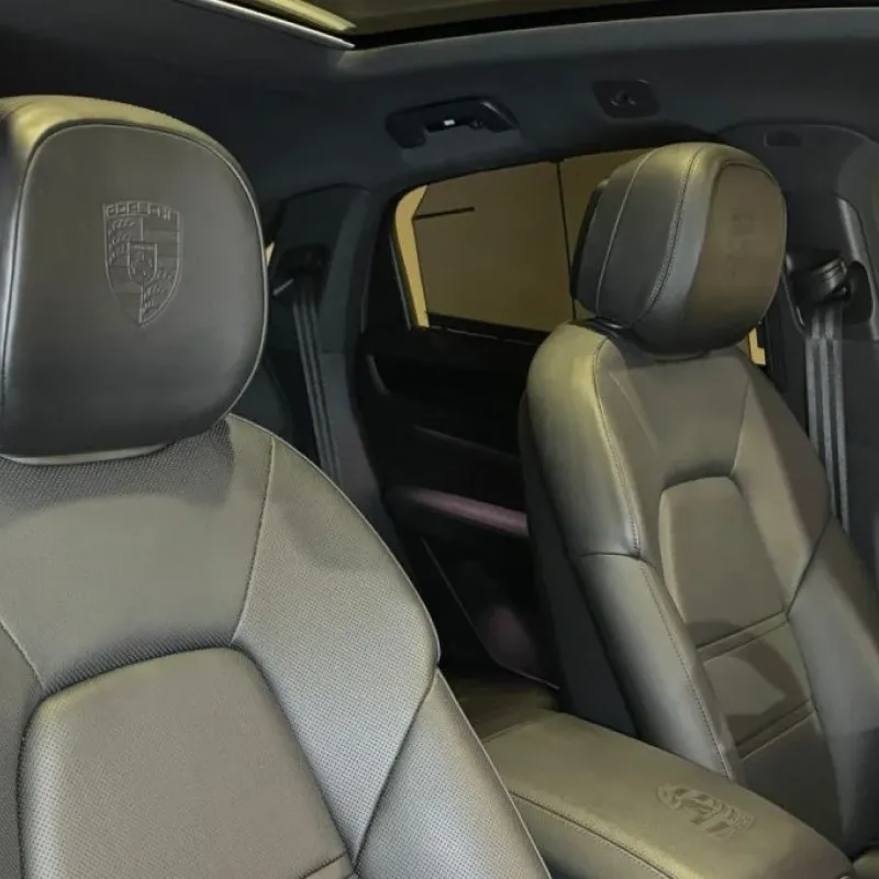 Detalles Porsche: escudo en reposacabezas, grabados en consola, luces de cortesía LED con anagrama